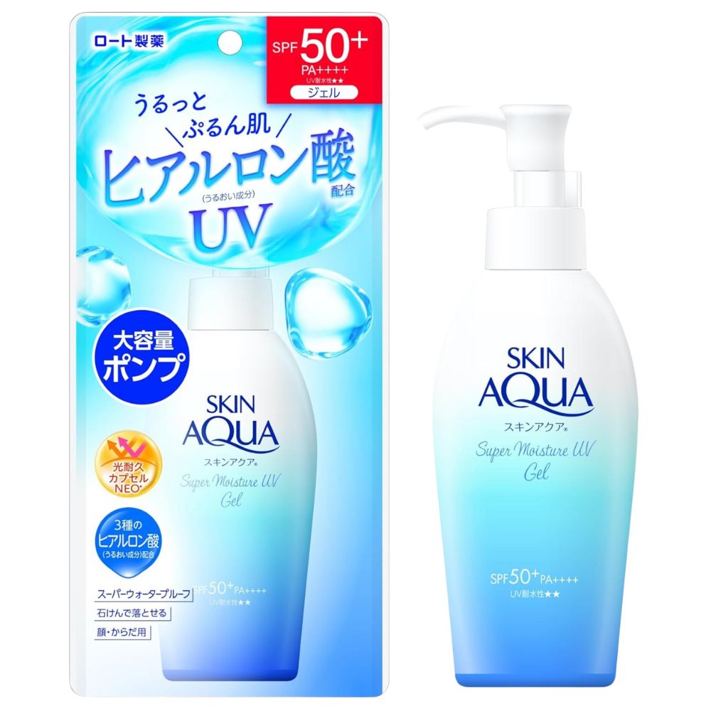 Experience weightless, full-body UV protection with our SKIN AQUA Super Moisture UV Sunscreen Gel SPF 50+, PA++++. This hydrating gel sunscreen features a water retention formula enriched with hyaluronic acid, leaving your skin feeling moisturized and protected.